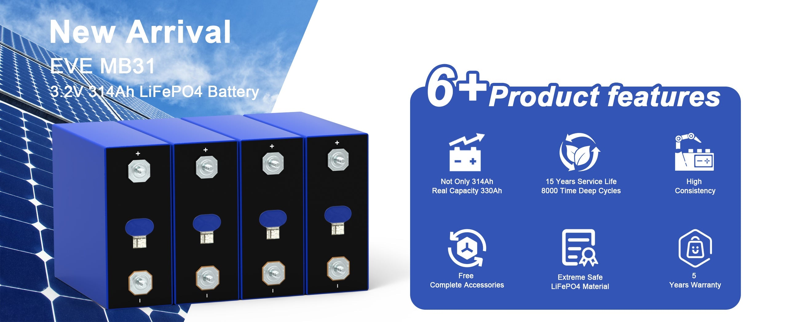 LiFePo4 Cells 3.2V 314ah, Grade A EVE MB31 for DIY Solar EU Stock EU Stock