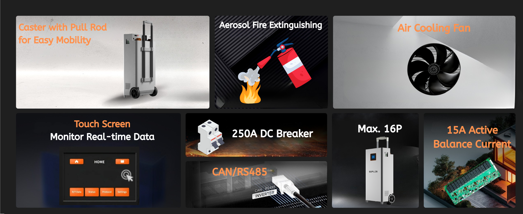 🔥 Built-In Safety Features – Aerosol fire suppression and 250A DC circuit breaker ensure ultimate protection against electrical hazards.