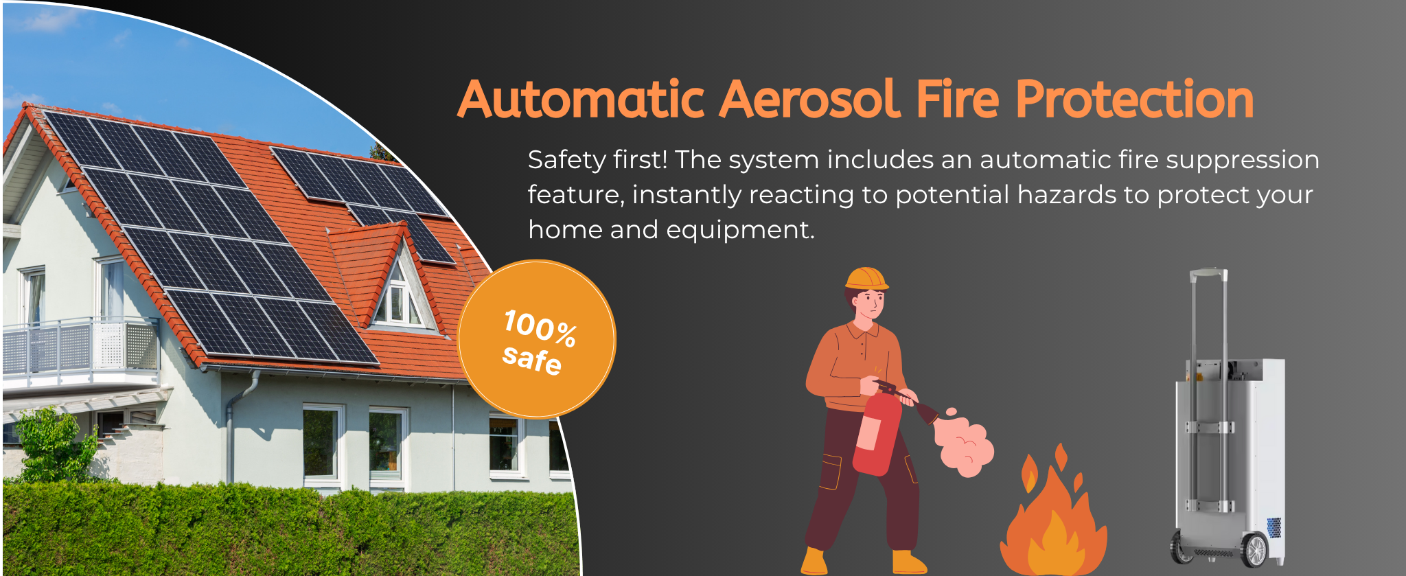 Circuit breaker + aerosol fire suppression automatically protect against surges and overheating—safest battery for homes with kids/pets.