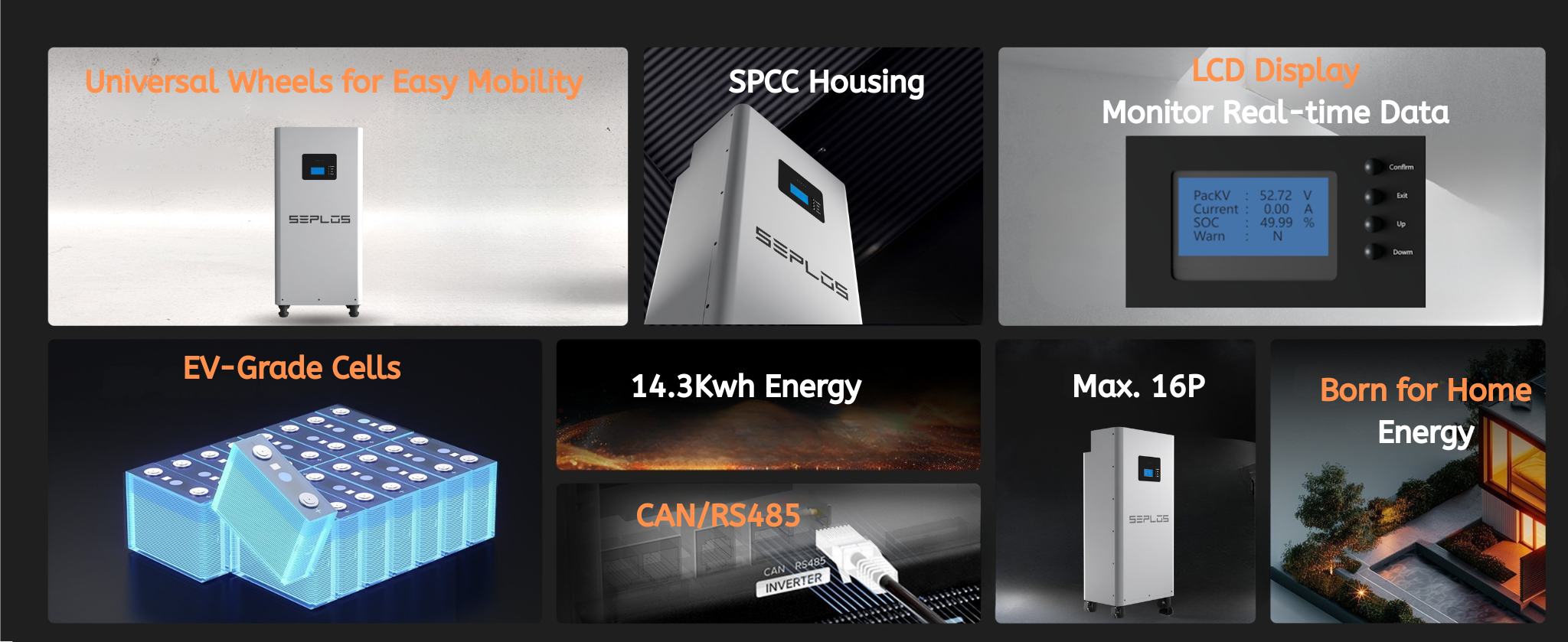 The Seplos 48V 280Ah lithium-ion battery features an SPCC construction. The SPCC enclosure not only lends rugged durability but its integrated structure promotes heat dissipation for prolonged healthy operation. Be it home storage or off-grid cabin use, you can rely on this battery's robust quality to maintain optimal performance.