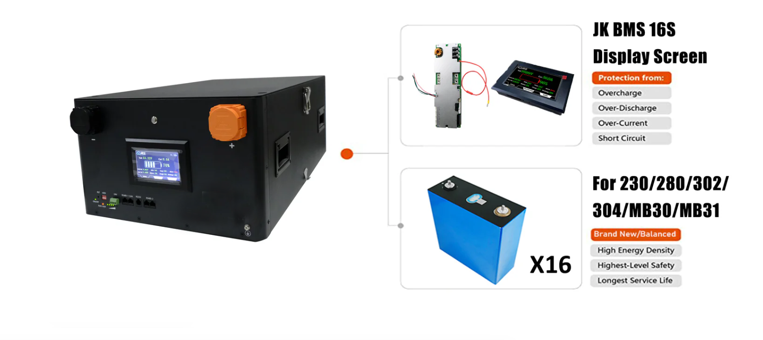 EU Stock Jk 280 Diy Kit Lifepo4 Battery Kit with Bms 48v 51.2v 280ah Vertical Battery for Home Energy Storage System